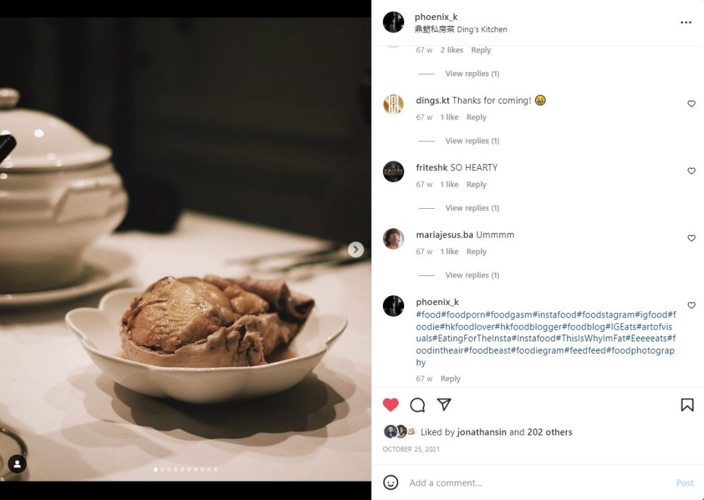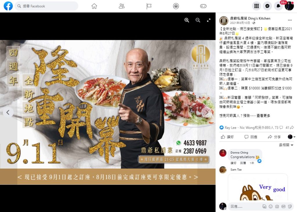改善品牌形象:我們邀請了一些年輕的KOL到鼎爺私房菜店內宣傳,以觸及更多年輕的受眾,讓品牌年輕化。此外,由於一些人認為鼎爺私房菜的菜式過於昂貴,我們在社交平台上宣傳他們的菜式,強調它們是懷舊菜式,內含複雜的工序和歷史價值,令受眾更了解到他們每一道菜式都是精心製作,物超所值。