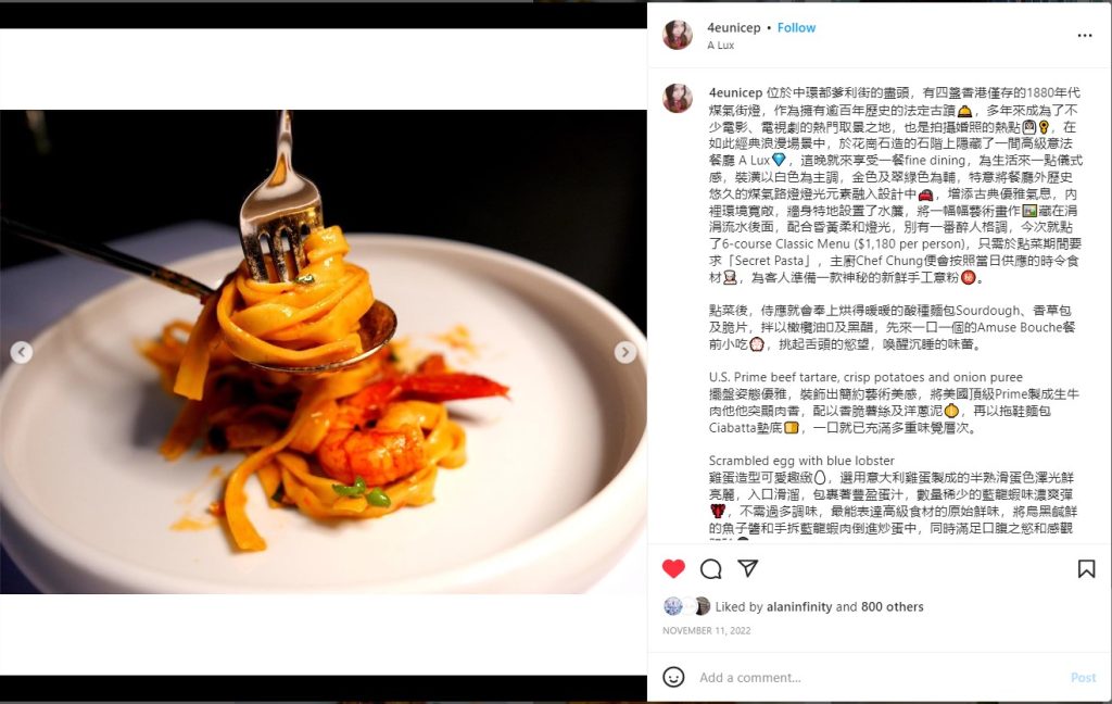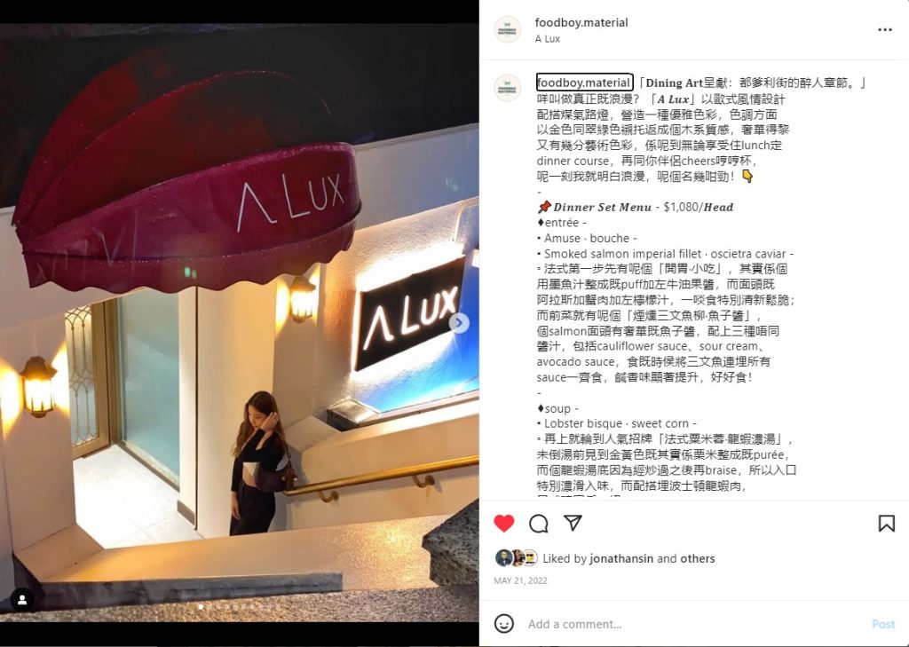 通過以上策略,我們成功地把 A Lux 打造成網絡上的熱門餐廳,並在疫情期間把餐廳的知名度提升,並且成功地吸引了不少受眾。此外,通過在推廣活動為A Lux帶來持續的曝光。